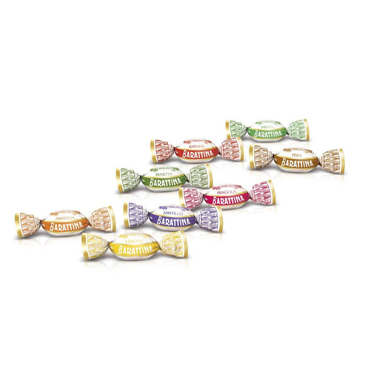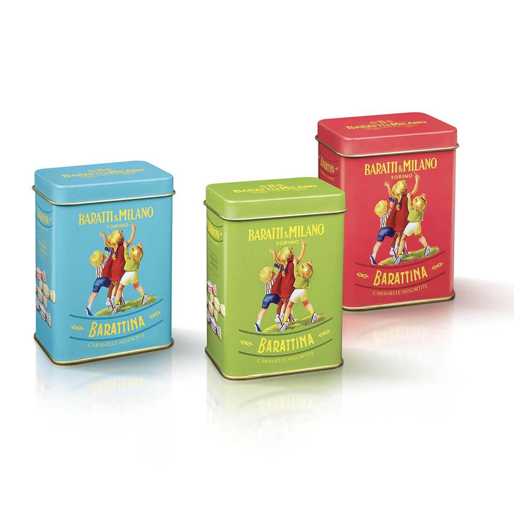 Свежа и цветна мини кутия, обогатена с винтидж декорации, за да се насладите на широка гама от осем различни вкуса на Barattina Classica Baratti, мини версията на известната и обичана Caramella di Torino. Тази джобна версия предлага разнообразие от сладки изкушения, идеални за задоволяване на всяко желание. От сочни бонбони с плодов вкус до по-традиционни вариации, "Barattina" носи със себе си всичко, от което се нуждаете за един малък миг на удовлетворяваща сладост. В тази мини кутия Baratti & Milano предлага своята "Barattina" в 8 вкуса: портокал, ягода, лимон, ябълка Renetta, мента, боровинка, круша и Ratafià.
